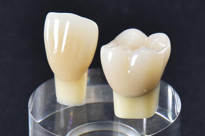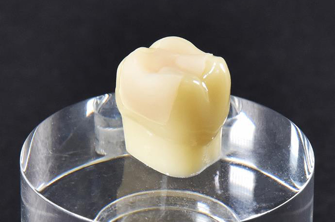 患者様のお口から型どりした模型をコンピューターで読み取り、専用の装置でハイブリッドセラミックのブロックを削り出して作製する被せ物です。