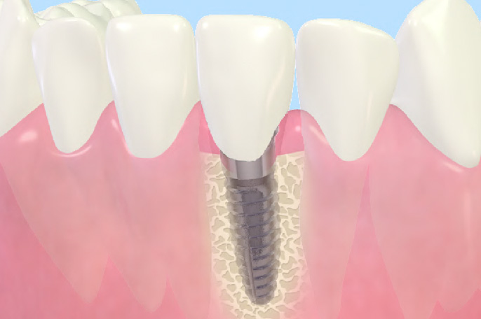 インプラントは、顎の骨にインプラント体(歯の土台)を埋入して、上部に人工歯を被せる治療です。ご自分の歯と同様に違和感が少なく噛むことができます。見た目も天然歯に近く審美性にも優れているため、しっかりとメインテナンスを行っていれば、歯を失う前と変わらない生活を送ることができます。